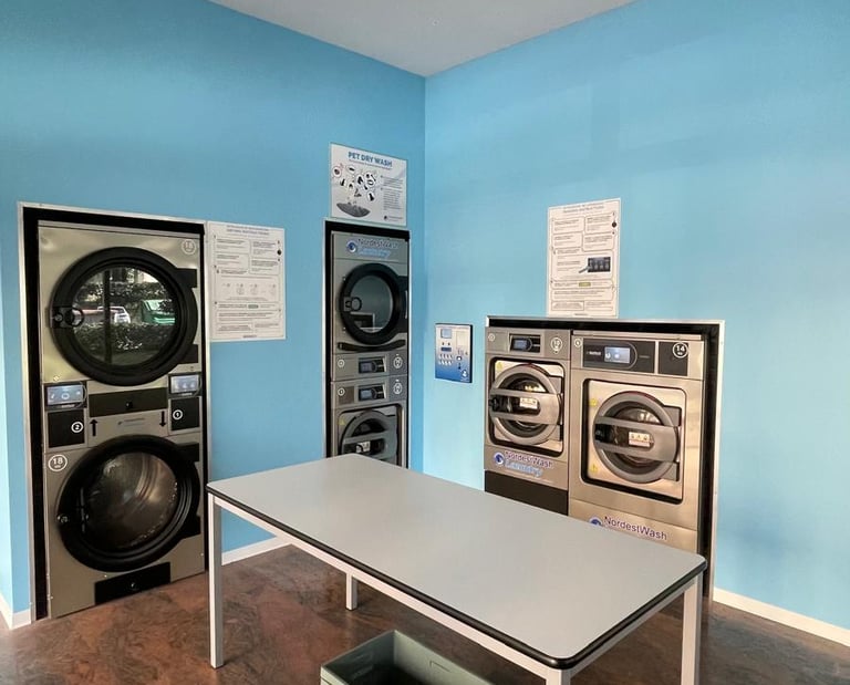 Offriamo lavatrici e asciugatrici per tutti i capi, incluso il servizio Pet Wash per vestiti, tappeti e accessori animali, il tutto in un ambiente pulito e confortevole per offrirvi un’esperienza unica.